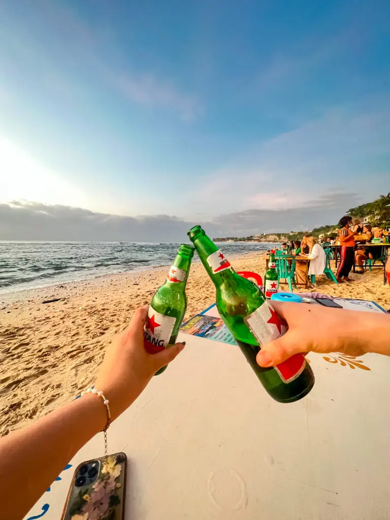 Bingin Beach is another great place to spend the day exploring. The water is crystal clear and there are plenty of restaurants and bars along the shore to stop and explore.