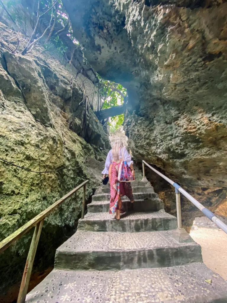 If you are seeking more than just a Bintang or want to see a unique view from atop the cliffs once you enter the cave area you will see a set of stairs leading up the opposite side. These stairs lead to a warung perched on top. It even has a pool!